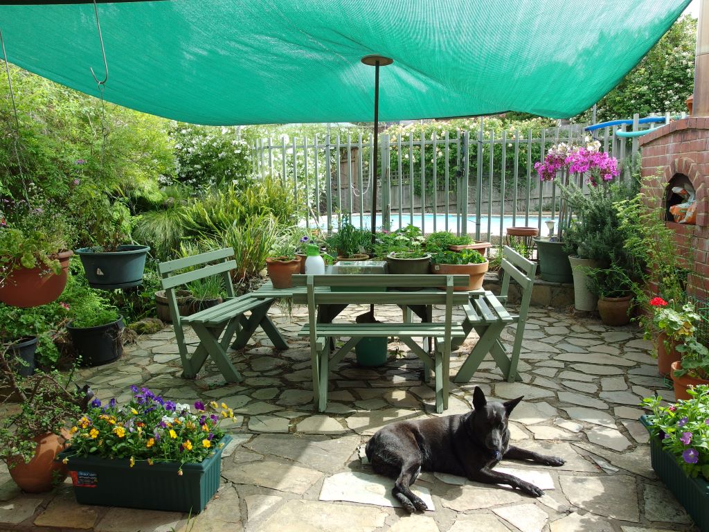 I thought I would put dog in the house and back yard whilst we unhitched the car in the street, then drove both into their parking places. Thought dog would be happy to explore her yard again. Not so. I had to work hard to drag her up the drive and into the house. Then ,while we were unhitching she was trying to jump the gates. No way was that Bus moving an inch without her on board! So out she came, and onto Bus. Once it was parked, we let her roam with us whilst we were unpacking, and she was happy.