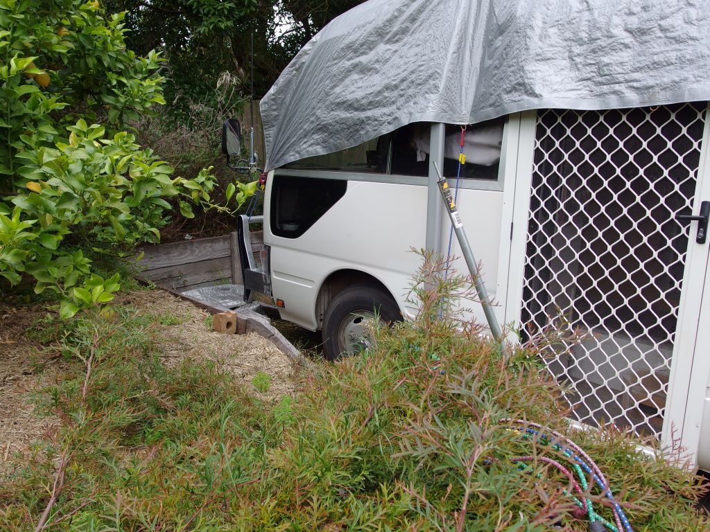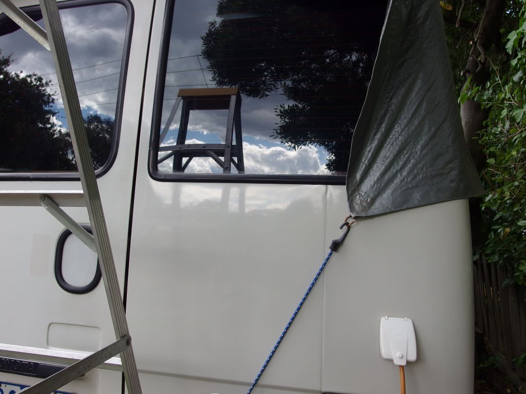 So we put on the covering tarps to protect Bus from the elements and all the stuff that falls from the neighbours’ trees.