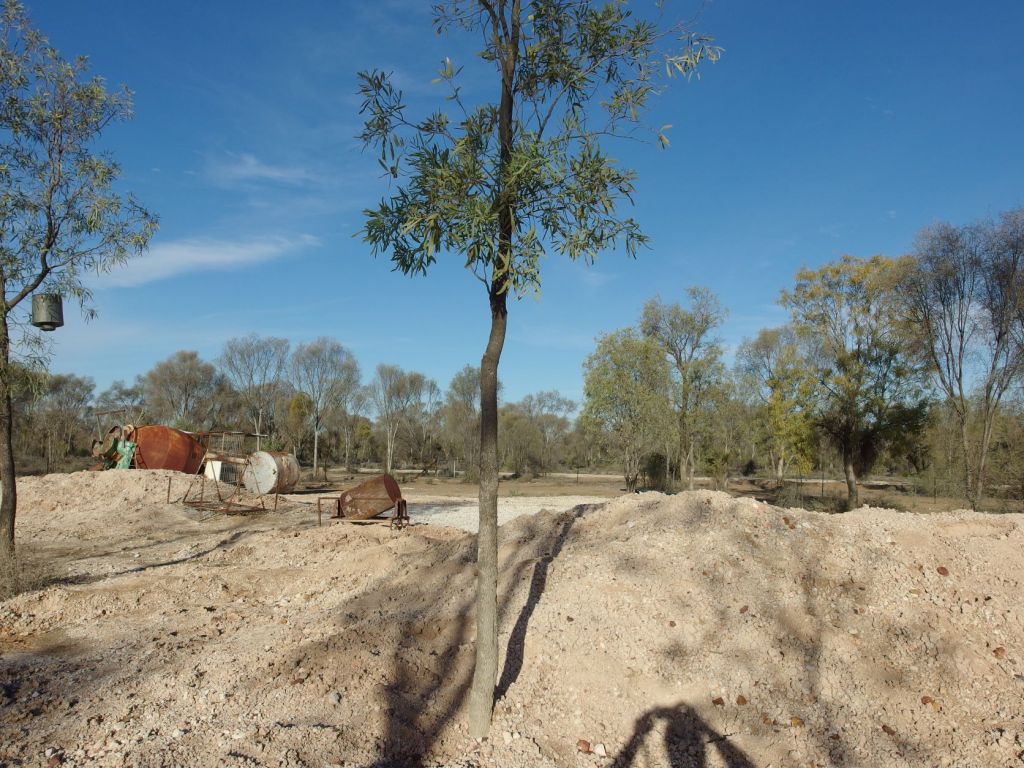 We walked across to the park’s fossicking area, off to one corner of the undeveloped part of the grounds. Just wanted to have a look at their set up. We’d had some discussion over whether the heaps of mine dirt had been brought in, or came from shafts right there. To me, they seemed too extensive to have been trucked in. The park was located right at the extremity of where there had been diggings, so there might have been some mining here.