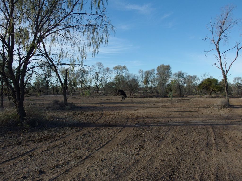 For a short while, we passed through cypress pine wooded country. I love cypress pines. But then emerged onto flat plains country, where we could see for a very long way.