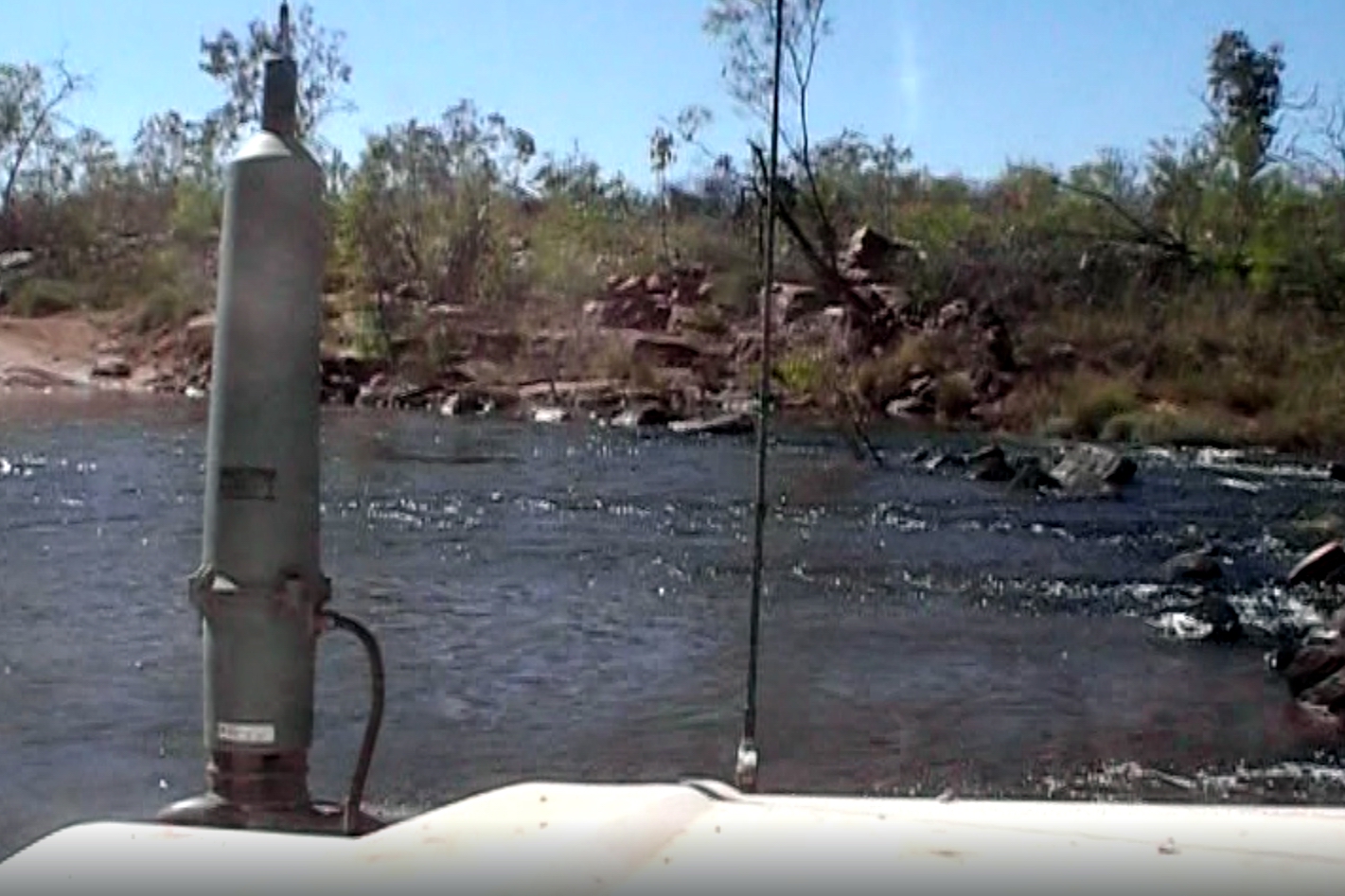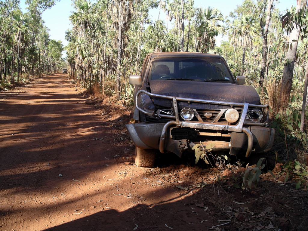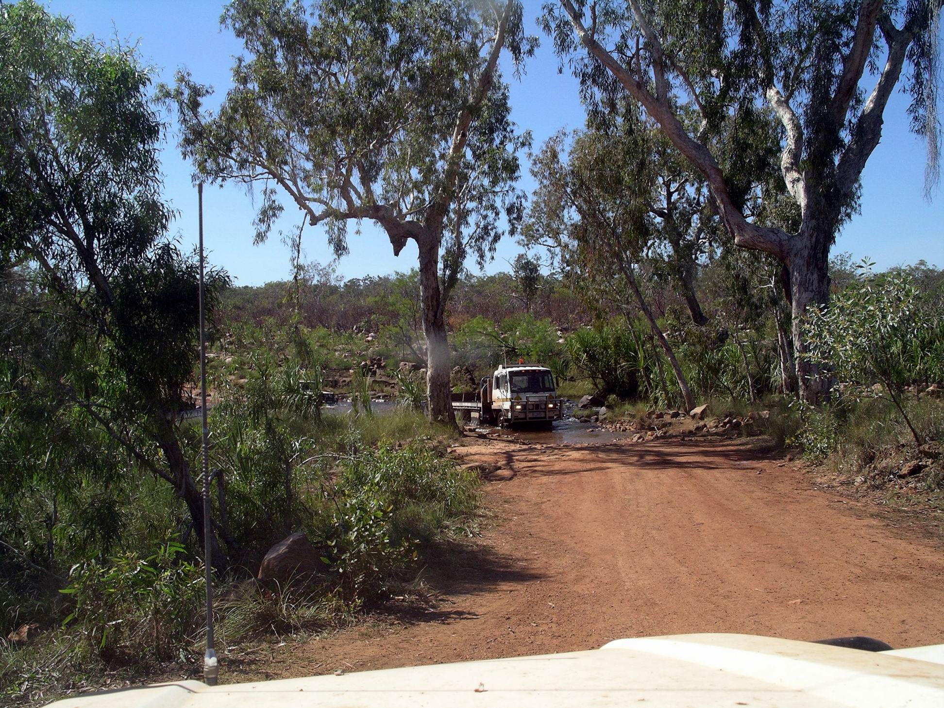 As we approached the crossing of the King Edward River, a recovery tilt try truck was coming from the other side – presumably on the way to collect the accident vehicle. He mangled the crossing quite badly and had to reverse out to change direction. Definitely harder than it looks!