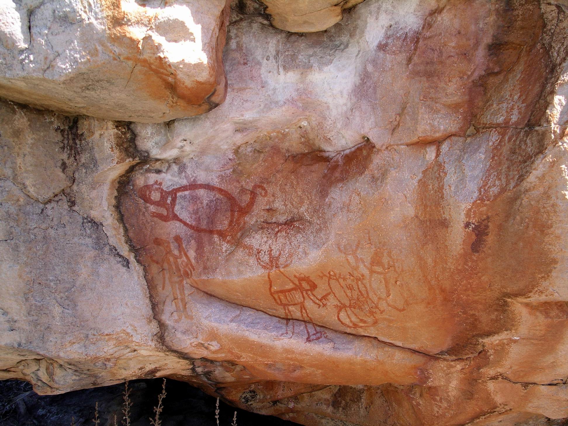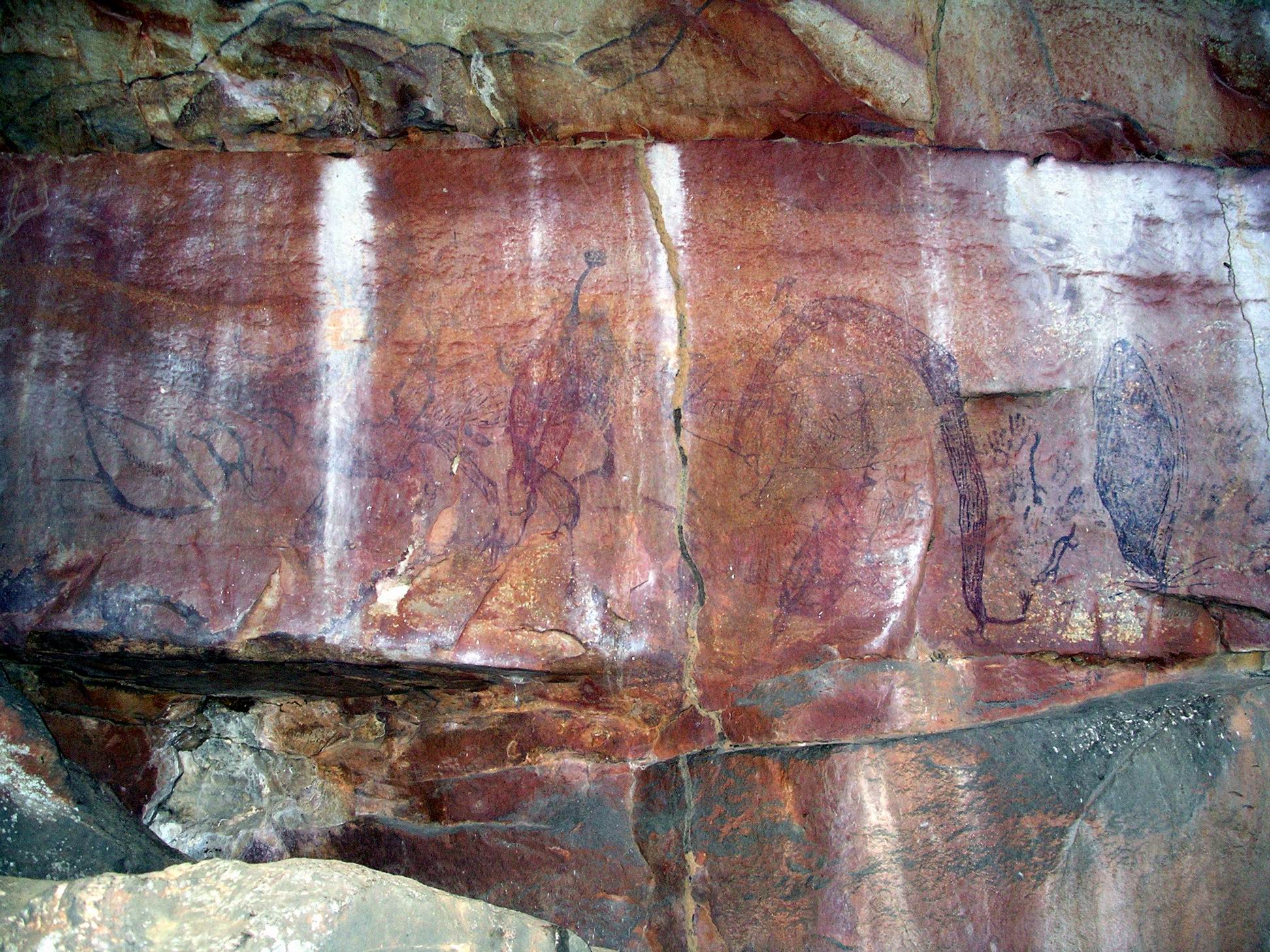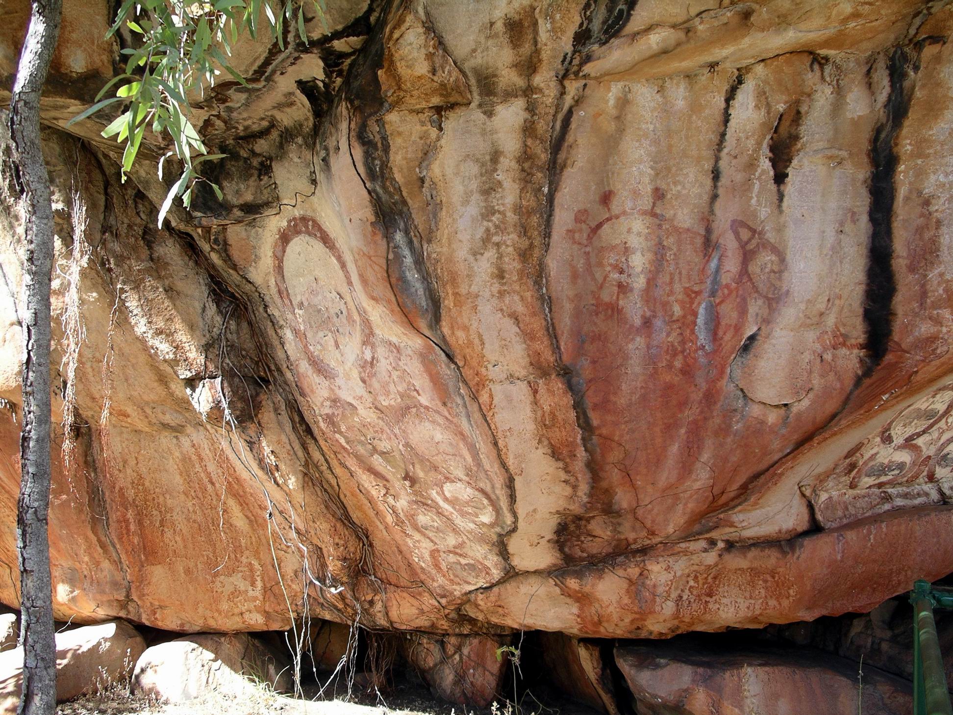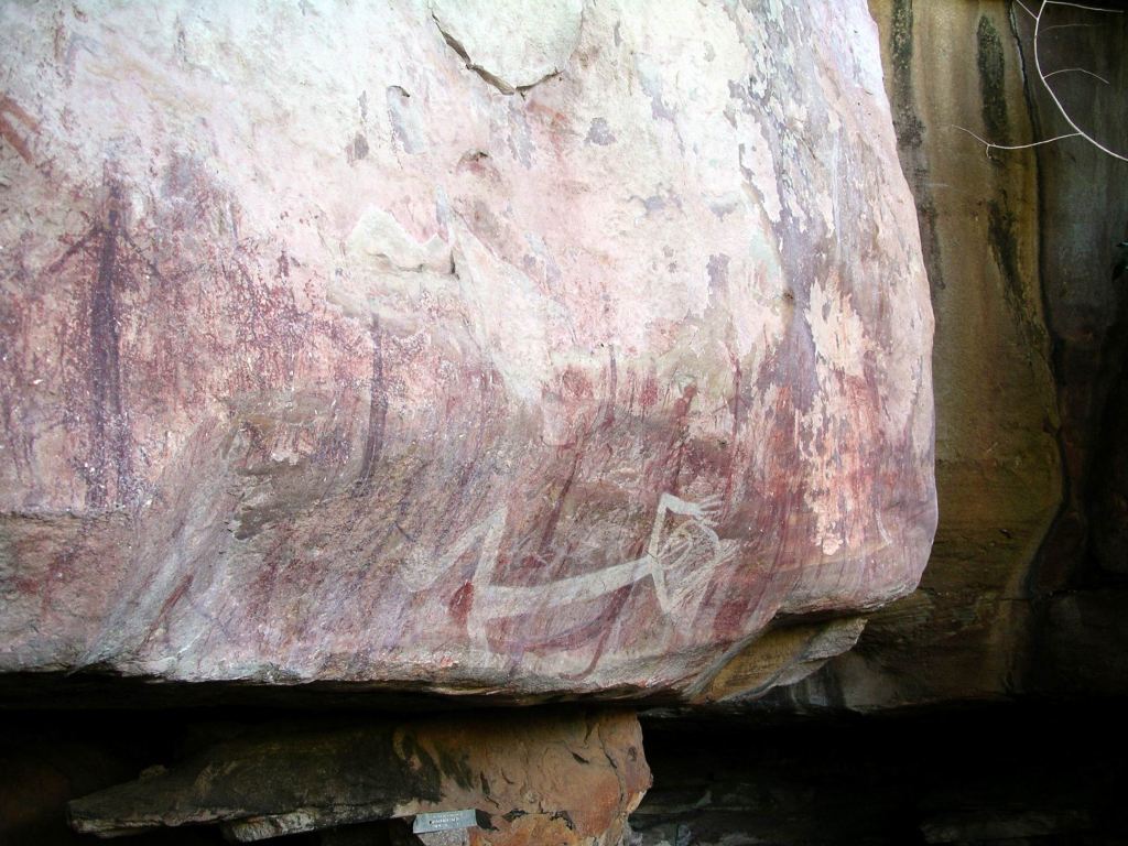 The grass around these had been burnt, so the various rocks and outcrops where the paintings occurred, were more obvious. It made wandering around the area really pleasant. The galleries now had board walks constructed around them, to protect the sites.