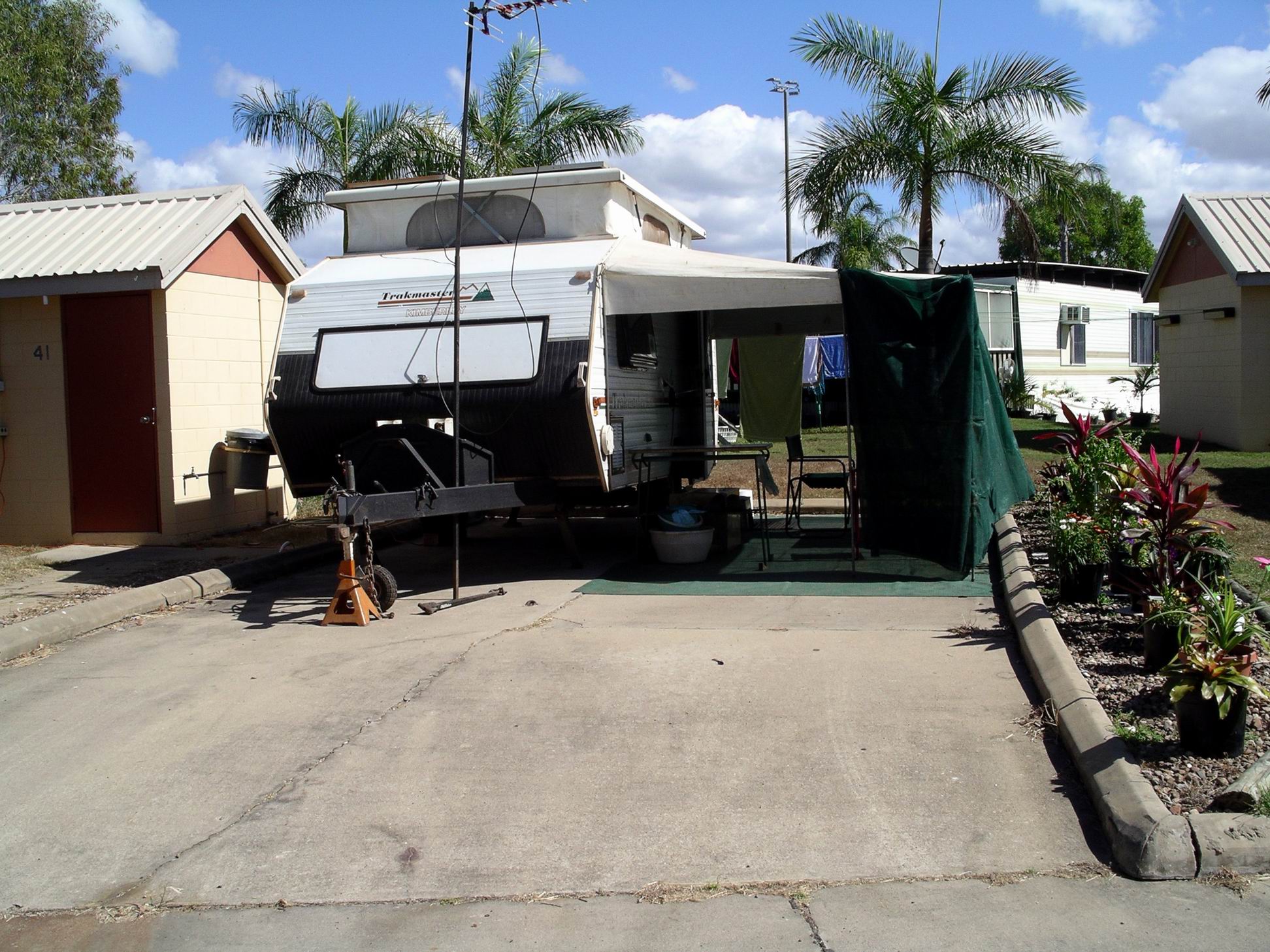 Our chosen park – the Airlie Cove Tourist Park – was through the town centre, on the road to Shute Harbour. The park was now more developed and up-market, but still with lots of lovely lush, green gardens and trees. We were allocated a very private, pleasant en-suite site, towards the back of the park, for $46.80 a night, after Big 4 discount. Tourism had definitely moved Airlie Beach prices into the big league!