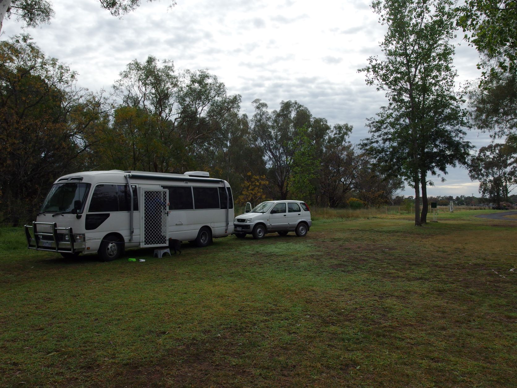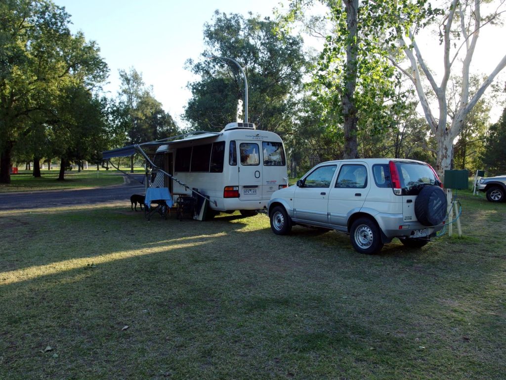 Back onto the highway and on to the next town Forbes. It was 4.30pm when we reached the Big 4 Holiday Park there. Yes, they told John, they did have TV in the park, but no available en-suite site. The addict was happy, me less so. They gave us a site right by the amenities block, where we could keep the car hitched onto Bus. Very helpful staff. Our powered site cost $30.60 after discount.