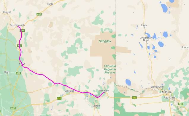 We traversed the rather monotonous stretch between Renmark and Mildura. Crossed the Murray into NSW and went on to Gol Gol, some nine or ten kms from Mildura.
